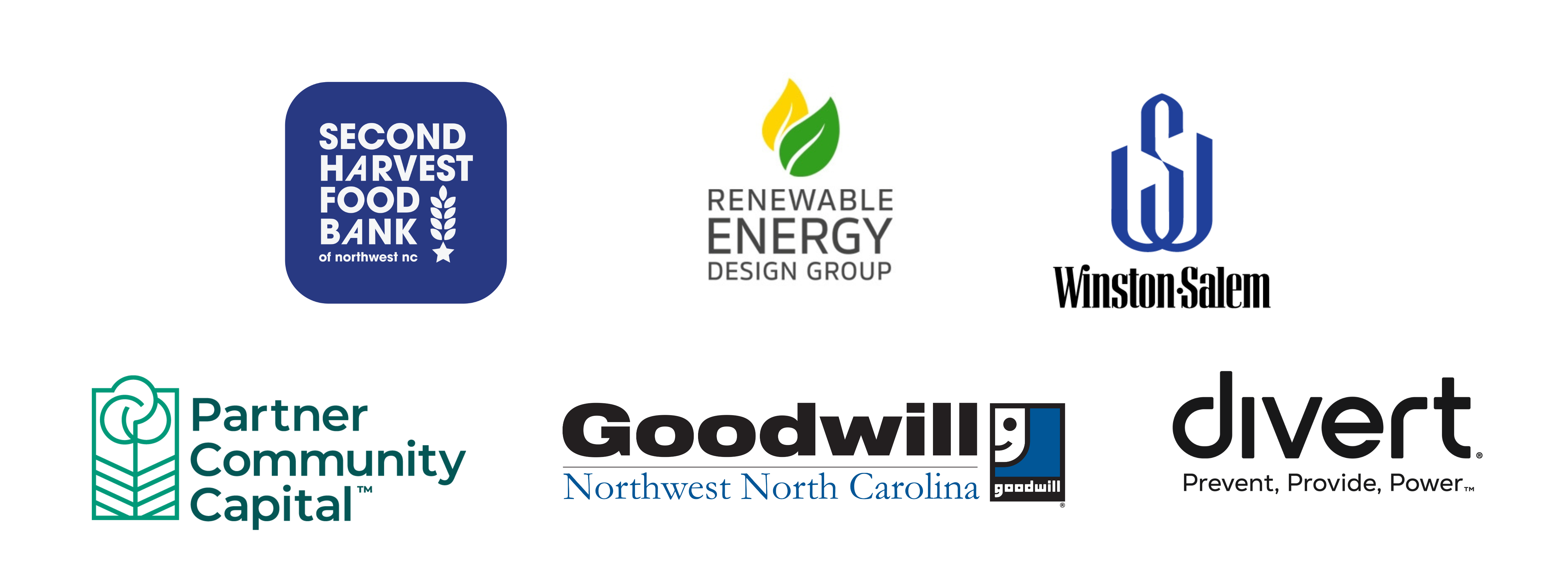 Divert | Forsyth Technical Community College | Go Green Plumbing, Heating, Air & Electrical | Goler Community Development Corporation | Goodwill Industries of NWNC | North Carolina League of Conservation Voters | Partner Community Capital | Piedmont Federal Bank | Piedmont Triad Regional Council | PowerUP NC | Renewable Energy Design Group | Renu Energy Solutions | Rivian | Second Harvest Food Bank of NWNC | The City of Winston-Salem | RATP Dev USA / Winston-Salem Transit Authority | The Winston-Salem Autism Foundation