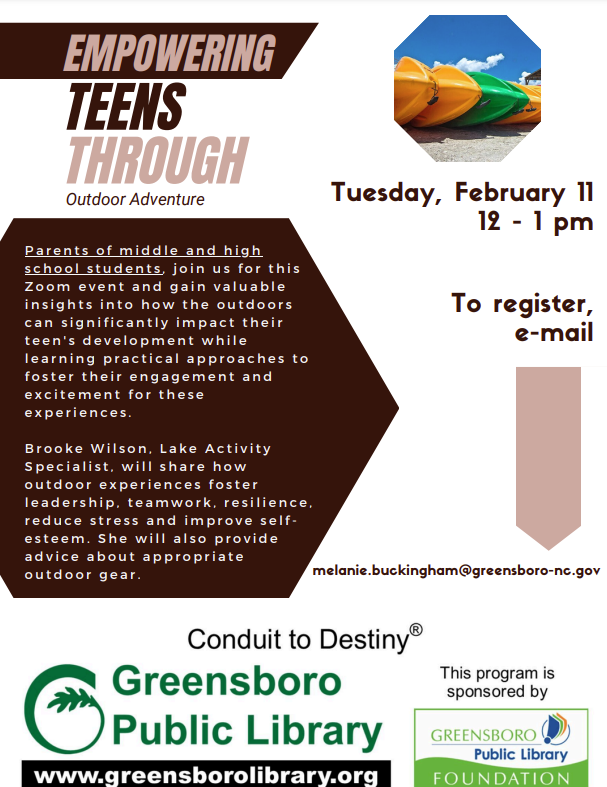 February 11, 2025 - 12:00pm to 1:00pm Zoom Free Zoom Session for Parents of middle and high school students who are interested in getting their kids outside more.