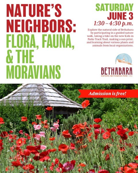 Explore the natural side of Bethabara by participating in a guided nature walk, taking a hike on the new Kids in Parks Track Trail, making a sun print, and learning about various plants and animals from local organizations.